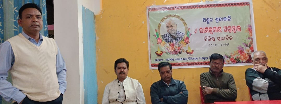 ଟିଟିଲାଗଡ଼,୨୪/୧(ଜେଏନ୍ଏସ),ବଲାଙ୍ଗୀର ଜିଲ୍ଲା ର ବରିଷ୍ଠ ସାମ୍ବାଦିକ ତଥା ଜିଲ୍ଲା ସାମ୍ବାଦିକ ସଂଘ ର ପ୍ରତିଷ୍ଠାତା ସଦସ୍ୟ ସ୍ବର୍ଗତ ରାମ କୁମାର ଅଗ୍ରୱାଲ ଙ୍କ ଶୋକସଭା ସ୍ଥାନୀୟ ହୋଟେଲ୍ ୟାସ ପରିସରରେ ଅନୁଷ୍ଠିତ ହୋଇଯାଇଛି।ସାମ୍ବାଦିକ ଦୀପକ ସମ୍ମାଦାର ଙ୍କ ସଭାପତିତ୍ୱ ରେ ଆୟୋଜିତ ଶୋକସଭା ରେ ବଲାଙ୍ଗୀର ଜିଲ୍ଲା ସାମ୍ବାଦିକ ସଂଘ ସଭାପତି ଶିବ ପ୍ରସାଦ ପରିଡା,ବରିଷ୍ଠ ସାମ୍ବାଦିକ ମାନସ ରଞ୍ଜନ ମହାନ୍ତି, ଗୁଜୁରାଟୀ ସମାଜ ସଭାପତି ହରିଶ ରାୟଠାତା ପ୍ରମୁଖ ମଞ୍ଚାସିନ ଥିଲେ।ସ୍ବର୍ଗତ ଅଗ୍ରୱାଲ ଜଣେ ନିର୍ଭୀକ ଓ ସାଲିସ ବିହୀନ ସରକାରୀ ସିକୃତୀ ପ୍ରାପ୍ତ ସାମ୍ବାଦିକ ଥିଲେ।ତାଙ୍କ ବିୟୋଗ ସାମ୍ବାଦିକତା କ୍ଷେତ୍ରରେ ଏକ ଶୂନ୍ୟସ୍ଥାନ ସୃଷ୍ଟି କରିଥିବା ନେଇ ମଞ୍ଚାସ୍ଥିତ ସାମ୍ବାଦିକ ମାନେ ଉଲ୍ଲେଖ କରିଥିଲେ।କାର୍ଯ୍ୟକ୍ରମରେ ଅନ୍ୟ ମାନଙ୍କ ମଧ୍ୟରେ ସାମ୍ବାଦିକ ସତ୍ୟବ୍ରତ ପଣ୍ଡା, ସଞ୍ଜୟ ବେହେରା, ତୀର୍ଥଙ୍କର ପଟେଲ, ମନୋଜ କୁମାର ଶତପଥି, , ସୁଧୀର ଦାସ,ଭବାନୀ ପ୍ରସାଦ ଷଡ଼ଙ୍ଗୀ,ଜିତୁ ସାହୁ,ରାଜ୍ୟସଭା ସାଂସଦ ଙ୍କ ପ୍ରତିନିଧି ରମେଶ ଅଗ୍ରୱାଲ ପ୍ରମୁଖ ଯୋଗଦେଇ ସ୍ବର୍ଗତ ଅଗ୍ରୱାଲ ଙ୍କ ଶ୍ରୁତିଚାରଣ କରିଥିଲେ।