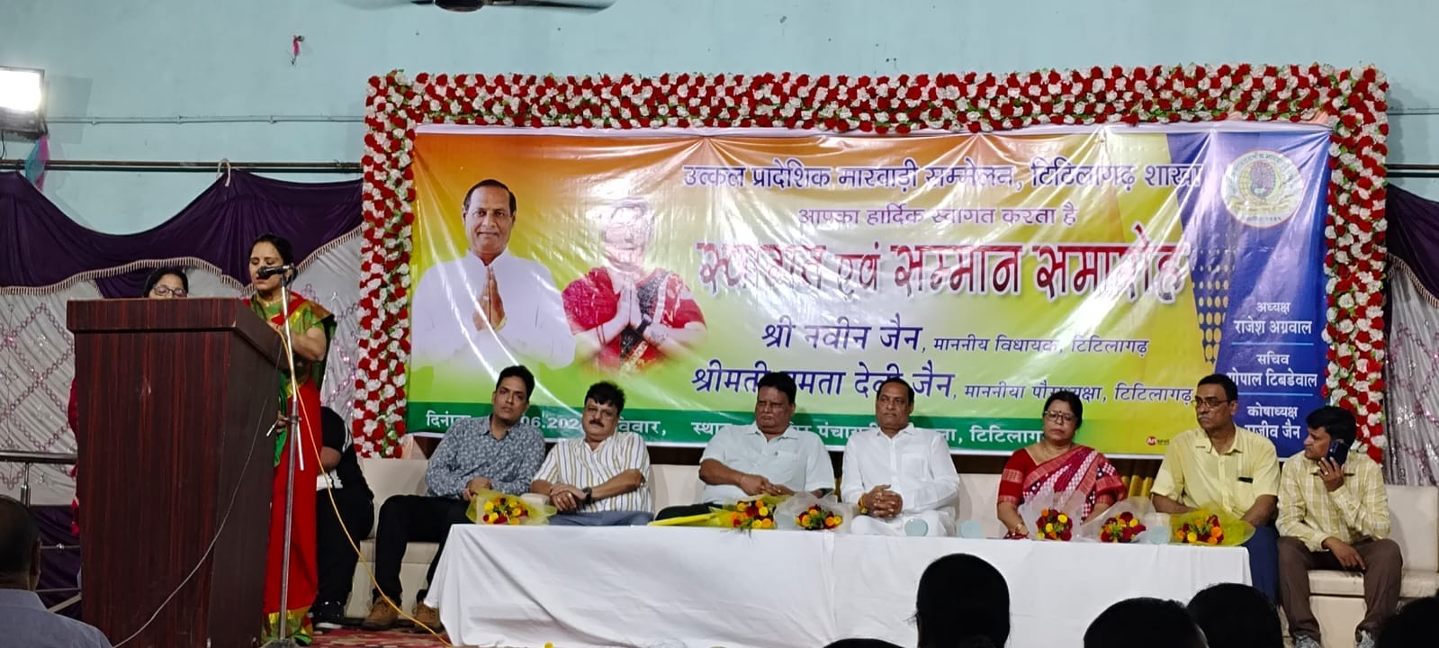 ଟିଟିଲାଗଡ଼ ୧୭/୬ (ଜେଏନ୍ଏସ୍), ଉତ୍କଳ ପ୍ରାଦେଶିକ ମାରୱାଡ଼ି ସମ୍ମେଳନ ଟିଟିଲାଗଡ଼ ଶାଖା ପକ୍ଷରୁ ସ୍ଥାନୀୟ ମହାବୀର ପଞ୍ଚାୟତ ଧର୍ମଶାଳା ପରିସରରେ ସ୍ଵାଗତ ଓ ସମ୍ମାନ ସମାରୋହ ଅନୁଷ୍ଠିତ ହୋଇଯାଇଛି । କାର୍ଯ୍ୟକ୍ରମରେ ମୁଖ୍ୟଅତିଥି ଭାବରେ ବିଧାୟକ ନବୀନ ଜୈନ ଏବଂ ସମ୍ମାନିତ ଅତିଥି ଭାବରେ ପୌର ଅଧ୍ୟକ୍ଷା ମମତାଦେବୀ ଜୈନ ଯୋଗଦେଇଥିଲେ।
