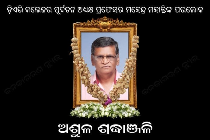 ଡ଼ିଏଭି କଲେଜର ପୂର୍ବତନ ଅଧ୍ୟକ୍ଷ ପ୍ରଫେସର ମହେନ୍ଦ୍ର ମହାନ୍ତିଙ୍କ ପରଲୋକ