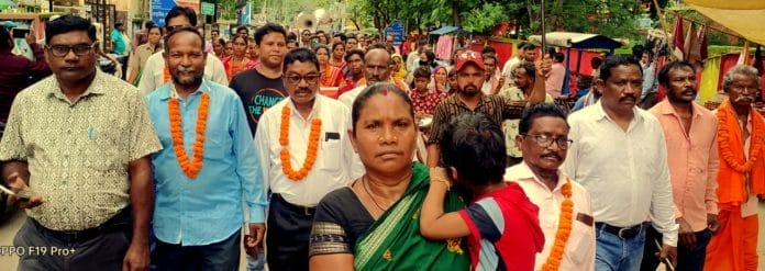 ଟିଟିଲାଗଡ଼,୦୯/୦୮(ଜେଏନ୍ଏସ୍) :  ଜିଲ୍ଲା ଆଦିବାସୀ କଲ୍ୟାଣ ସଂଘ ଟିଟିଲାଗଡ଼ ଶାଖା ପକ୍ଷରୁ ସ୍ଥାନୀୟ ଆଦିବାସୀ ଭବନ ପରିସରରେ ବିଶ୍ଵ ଆଦିବାସୀ ଦିବସ ପାଳିତ ହୋଇଯାଇଛି । ବ୍ଲକ ସଭାପତି ପଦ୍ମନ୍ ପ୍ରଧାନିଙ୍କ ସଭାପତିତ୍ଵରେ ଆୟୋଜିତ ସଭାରେ ବହୁ ସଂଖ୍ୟକ ଆଦିବାସୀ ଯୋଗଦେଇ ସାଂପ୍ରତିକ ସ୍ଥିତିରେ ଆଦିବାସୀଙ୍କ ବିଭିନ୍ନ ସମସ୍ୟାକୁ ନେଇ ଆଲୋଚନା କରିଥିଲେ । ଆଦିବାସୀ ଭବନ ଠାରୁ ବହୁ ସଂଖ୍ୟାରେ ଆଦିବାସୀମାନେ ପାରମ୍ପରିକ ବାଦ୍ୟ ଓ ଅସ୍ତ୍ର ଶସ୍ତ୍ର  ସହ ବିଶାଳ ଶୋଭାଯାତ୍ରାରେ ବାହାରି ନଗର ପରିକ୍ରମା କରିବା ସହ ଉପଜିଲ୍ଲାପାଳ କାର୍ଯ୍ୟାଳୟ ସମ୍ମୁଖରେରେ ପହଞ୍ଚି ସଂଘ ପକ୍ଷରୁ ୭ ଦଫା ଦାବୀ ସମ୍ବଳିତ ଦାବୀ ପତ୍ର ମୁଖ୍ୟମନ୍ତ୍ରୀ, ପ୍ରଧାନମନ୍ତ୍ରୀ ଓ ମହାମହିମ ରାଷ୍ଟ୍ରପତିଙ୍କ ଉଦ୍ଦେଶ୍ୟରେ ସହାୟକ ଉପଜିଲ୍ଲାପାଳ ସନ୍ଦୀପ ଚନ୍ଦ୍ରକାରଙ୍କୁ ପ୍ରଦାନ କରିଥିଲେ । ସଂଘ ପକ୍ଷରୁ ଉଲ୍ଲେଖ ଦାବୀଗୁଡ଼ିକ ମଧ୍ୟରେ  ଆଦିବାସୀଙ୍କ ପାଇଁ ଉଦ୍ଧିଷ୍ଟ ବିଭିନ୍ନ ସରକାରୀ ସୁବିଧା ହାତେଇବା ଉଦ୍ଦେଶ୍ୟରେ ଆଦିବାସୀ ଝିଅଙ୍କୁ ପ୍ରଲୋଭିତ କରି ବିବାହ କରିବା, ଚଞ୍ଚକତା କରି ଆଦିବାସୀ କୋଟାରେ ସରକାରୀ ଚାକିରି ହାତେଇ ଥିବା କର୍ମଚାରୀଙ୍କୁ ତୁରନ୍ତ ବହିଷ୍କାର କରିବା, ଅଣଆଦିବାସୀଙ୍କୁ ଆଦିବାସୀ ତାଲିକାରେ ସାମିଲ ପ୍ରକ୍ରିୟା ବନ୍ଦ କରିବା, ପ୍ରତି ବ୍ଲକରେ ଏକଲବ୍ୟ ମଡେଲ ସ୍କୁଲ ପ୍ରତିଷ୍ଠା କରିବା, ଛାତ୍ର ବୃତ୍ତି ବୃଦ୍ଧି କରିବା, ଭୂମିହୀନ ଆଦିବାସୀଙ୍କୁ ଚିହ୍ନଟ କରି ସରକାରୀ ଜମି ପ୍ରଦାନ କରିବା, ଆଦିବାସୀ ଚାଷୀଙ୍କୁ ଉନ୍ନତ କୃଷି ଯନ୍ତ୍ରପାତି ସହ ୧୦ ଲକ୍ଷ ବିନା ସୁଧରେ କୃଷି ଋଣ ଯୋଗାଇବା ଆଦି ପ୍ରମୁଖ ଦାବୀ ରହିଛି ।କାର୍ଯ୍ୟକ୍ରମରେ ବ୍ଲକ ସଭାପତି ପଦ୍ମନ୍ ପ୍ରଧାନି, ନିତ୍ୟାନନ୍ଦ ମାଝୀ, ଥବିର ପୁଝାରୀ, ସୁନିଲ ମାଝୀ, ବିକ୍ରମ ଭୋଇ, ଚଞ୍ଚଳା ମାଝୀ, ମାହେଶ୍ୱରୀ ମାଝୀ, ଧନମତ ମାଝୀ, ଜଗନ୍ନାଥ ମାଝୀ, ପ୍ରେମଲାଲ ଜାନି ପ୍ରମୁଖଙ୍କ ସହ ଶତାଧିକ ଆଦିବାସୀ ଉପସ୍ଥିତ ଥିଲେ ।
