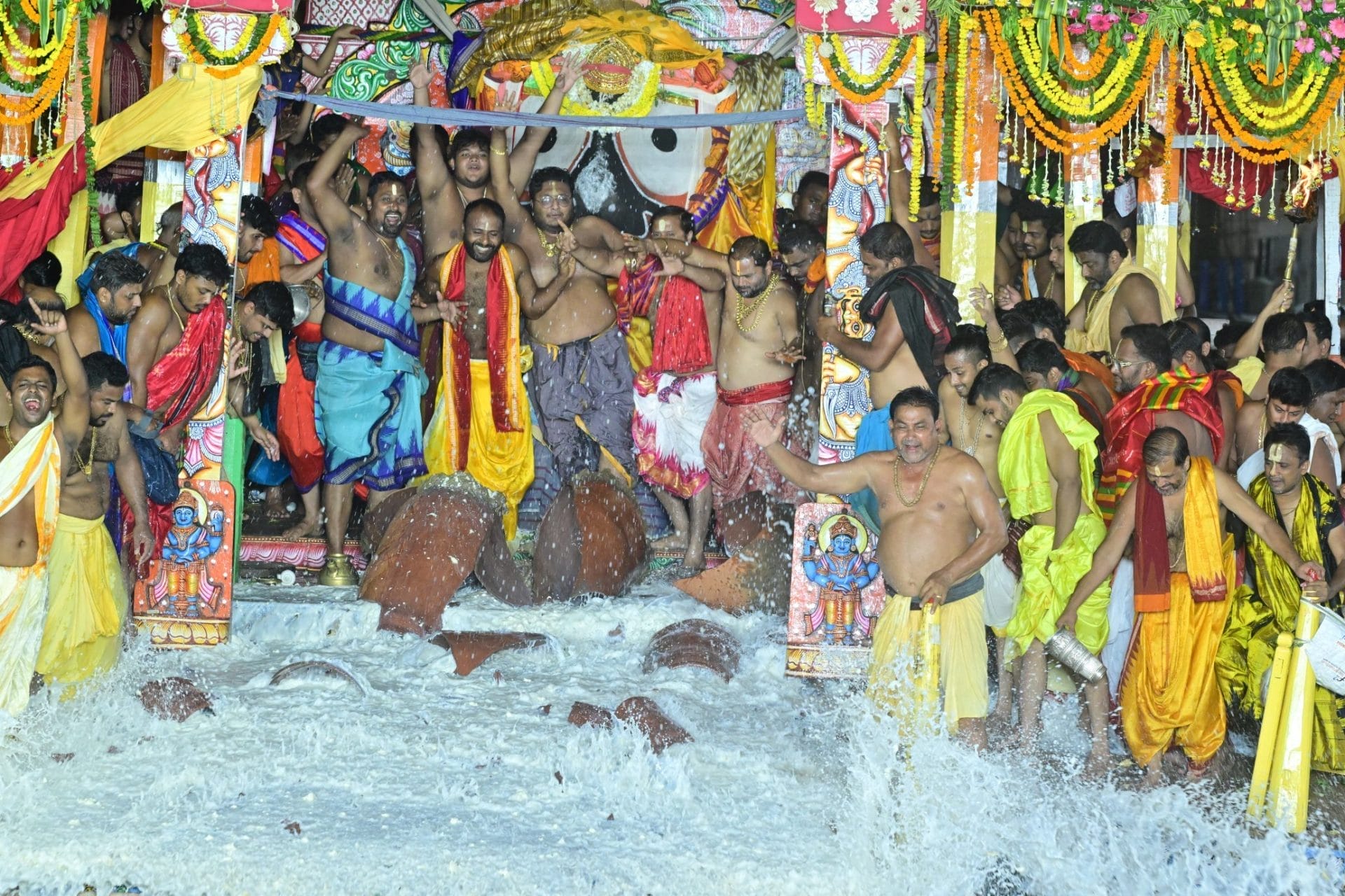 ପୁରୀ,୧୮/୦୭ (ଜେଏନ୍ଏସ୍/ବଟ ପଣ୍ଡା) : ରଥାରୂଢ ଶ୍ରୀଜଗନ୍ନାଥଙ୍କ ନବଦିନାମତ୍କ ଯାତ୍ରାର ଦ୍ୱାଦଶ ଦିବସ ହେଉଛି ଅଧରପଣା ନିତି। ଆଷାଢ ମାସ ଶୁକ୍ଳପକ୍ଷ ଦ୍ୱାଦଶୀ ତିଥି ରଥଯାତ୍ରାର ସମାପ୍ତିରେ ସିଂହଦ୍ଵାର ଠାରେ ତିନି ରଥ ଉପରେ ଚତୁର୍ଦ୍ଧାମୂର୍ତ୍ତି ବଳଭଦ୍ର ,ସୁଭଦ୍ରା ଦେବୀ ଜଗନ୍ନାଥ ଏବଂ ଚକ୍ରରାଜ ସୁଦର୍ଶନ ମହାପ୍ରଭୁଙ୍କ ଠାରେ ଏକ ବିଶେଷ ଭୋଗ ଅର୍ପଣ କରାଯାଏ ତାହାହିଁ ହେଉଛି ଅଧର ପଣା। ମାଟି ହାଣ୍ଡିରେ ଏହି ଭୋଗ ହୋଇଥାଏ। ଦାରୁବିଗ୍ରହ ମାନଙ୍କ ଅଧର ବା ଓଷ୍ଠ ପର୍ଯ୍ୟନ୍ତ ମାପ ହୋଇ ସେହି ଉଚ୍ଚତାର ମାଟି ହାଣ୍ଡି ପ୍ରସ୍ତୁତ କରାଯାଇଥାଏ।ଦ୍ୱାଦଶୀ ତିଥିରେ ଠାକୁର ମାନଙ୍କ ନିକଟରେ ମଧ୍ୟାହ୍ନ ଧୂପ ଉଠିବା ପରେ ଯାଇ ଅଧରପଣା ନିତି କାନ୍ତି ଆରମ୍ଭ ହୋଇଥାଏ। ପାଣିଆ ଆପଟ ନିଯୋଗର ଦୈନିକ ପାଳିଆ ସେବକ ଗଣ ସିଂହଦ୍ଵାର ନିକଟରେ ଉପସ୍ଥିତ ରହି ଗୁମୁଟର ଦକ୍ଷିଣ ଦ୍ୱାରରେ ଥିବା ଛାଉଣୀ ମଠ କୂପରୁ ରଥ ଉପରକୁ ପାଣି ଆଣନ୍ତି। ରଥପଟା ଉପରେ କଞ୍ଚାମାଟି ରଖାଯାଇ ଏହା ଉପରେ ପୋଡା ମାଟିହାଣ୍ଡି ବା ଅଧରପଣା ହାଣ୍ଡି ରଖାଯାଏ । ସର୍ବ ପ୍ରଥମେ ପାଳିଆ ସୁଆର ମାନେ ବଳଭଦ୍ର ଦେବଙ୍କ ରଥ ଉପରେ ଅଧରପଣା ନିତି କରନ୍ତି। ପରେପରେ ମା ଭଗବତୀ ସ୍ୱରୂପିଣୀ ମା ସୁଭଦ୍ରାଙ୍କ ରଥରେ ଅଧରପଣା ନିତି ହୁଏ। ପରିଶେଷର ମହାପ୍ରଭୁ ଶ୍ରୀଜଗନ୍ନାଥଙ୍କ ପାଖରେ କରାଯାଏ। ଭକ୍ତଙ୍କ ପାପତାପ ହରଣ ପାଇଁ ଭକ୍ତବତ୍ସଳ ମହାପ୍ରଭୁ ବାହୁ ପ୍ରସାରି ଅଭିନନ୍ଦନ କରୁଛନ୍ତି ଭକ୍ତ ମାନଙ୍କୁ। ଅଧର ପଣାର ଗୋଟିଏ ଦିନ ପୂର୍ବରୁ ମହଣ ମହଣ ରତ୍ନ ଖଚିତ ଅଳଙ୍କାର ପିନ୍ଧି ଝଟକୁଥିଲେ ବିଶ୍ୱନିୟନ୍ତା ଦାରୁବ୍ରହ୍ମ କାଳିଆ ଠାକୁର କୋଟି ଓଡିଆଙ୍କ ମଉଡ଼ମଣି। ମହଣ ମହଣ ସୁବର୍ଣ୍ଣ ଆଭୂଷଣରେ ବିଭୁଷିତ ବ୍ରହ୍ମାଣ୍ଡ ଠାକୁର ଅପୂର୍ବ ଆଭାରେ ଆଖି ଝଲସି ଉଠୁଥିଲା। ସିଂହଦ୍ଵାର ନିକଟରେ ରଥାରୂଢ ଚତୁର୍ଦ୍ଧାମୂର୍ତ୍ତିଙ୍କ ଦର୍ଶନରେ ଆଖି ଝଲସି ଉଠୁଥିଲା। ପୁରି ସହରର ଗଲିକନ୍ଦି ସବୁଠାରେ ଲୋକାରଣ୍ୟ ସବୁଠି ଶୁଭୁଛି ଜୟ ଜଗନ୍ନାଥ ଜୟ ଜଗନ୍ନାଥ।