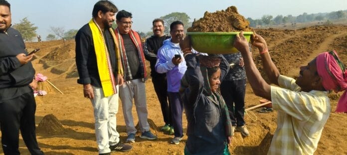 ଟିଟିଲାଗଡ,୧୩/୧(ଜେଏନଏସ), ରାଜ୍ୟ ସରକାର ଙ୍କ ପଞ୍ଚାୟତିରାଜ ବିଭାଗ ମନ୍ତ୍ରୀ ରବି ନାରାୟଣ ନାୟକ ଟିଟିଲାଗଡ ବ୍ଲକ ଗସ୍ତ ରେ ଆସି ବିଭିନ୍ନ ପଞ୍ଚାୟତ କୁ ଯାଇ ଉନ୍ନୟନ ମୂଳକ କାର୍ଯ୍ୟର ସମୀକ୍ଷା କରିଛନ୍ତି।ଟିଟିଲାଗଡ଼ ବ୍ଲକ ସିହିନି ପଞ୍ଚାୟତ କୁ ଯାଇ ସ୍ଥାନୀୟ ସରପଞ୍ଚ ଶ୍ରୀ ବୀରବର ସାହୁଙ୍କ ସହ ଭିବି ଜି ରାମ ଜି ଯୋଜନା ଅଧୀନରେ ଚାଲିଥିବା ବିଭିନ୍ନ ପ୍ରକଳ୍ପ ର ପରିଦର୍ଶନ କରିଥିଲେ।ପାହାଡ ଉପରୁ ବହିଯାଉଥିବା ବର୍ଷା ଜଳ ଅପଚୟ ନ କରି ପାହାଡ ତଳେ ମାଟି ବନ୍ଧ ଦ୍ଵାରା ସଂରକ୍ଷଣ କରାଯାଇ ଜଳ ସେଚନ କରାଯାଉଥିବା ଦେଖି ମନ୍ତ୍ରୀ ଶ୍ରୀ ନାୟକ ସରପଞ୍ଚ ଶ୍ରୀ ସାହୁ ଙ୍କ ଅଭିନବ ପ୍ରୟାସ କୁ ପ୍ରଶଂସା କରିଥିଲେ।ଏଥିସହ ଶ୍ରମିକ ଙ୍କ ସହ ବିଭିନ୍ନ ସୁବିଧା ଅସୁବିଧା ସମ୍ଵନ୍ଧରେ ଆଲୋଚନା କରିଥିଲେ। ଗ୍ରାମାଞ୍ଚଳରେ ଲୋକଙ୍କୁ ପର୍ଯ୍ୟାପ୍ତ କାମ ଯୋଗାଇବା ସହ ‘ଦାଦନ ମୁକ୍ତ ପଞ୍ଚାୟତ’ ଗଠନ କରିବା ସରକାର ଙ୍କ ପ୍ରାଥମିକତା ଥିବା ଶ୍ରୀ ନାୟକ ଉଲ୍ଲେଖ କରିଥିଲେ।।ସେହିପରି ବିଧାୟକ ନବୀନ ଜୈନ ଙ୍କ ସହ ବିଭିନ୍ନ ପଞ୍ଚାୟତ କୁ ଯାଇ ଉନ୍ନୟନ ମୂଳକ କାର୍ଯ୍ୟର ସମୀକ୍ଷା କରିଥିଲେ।