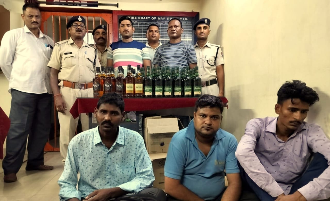 ଟ୍ରେନରୁ ବିପୁଳ ମାତ୍ରାରେ ମଦ ଜବତ ୩ଜଣଙ୍କୁ କାବୁ କରି ଜଣକୁ କୋର୍ଟ ଚାଲାଣ