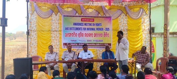 ଟିଟିଲାଗଡ଼,୧୯/୦୨/୨୦୨୫,(ଜେଏନ୍ଏସ୍),ଟିଟିଲାଗଡ଼ ବ୍ଲକ ଅନ୍ତର୍ଗତ ମହୁଲପଡ଼ା ଗ୍ରାମପଞ୍ଚାୟତ କାର୍ଯ୍ୟାଳୟ ଠାରେ ଅଗ୍ରଣୀ ବେସରକାରୀ ଅନୁଷ୍ଠାନ ଆକ୍ସନ୍ଏଡ୍ ଓ ଜନ ଜାଗରଣ ଦାଦନ ସଂଘ ପକ୍ଷରୁ ଅଣସଂଘଠିତ ଶ୍ରମିକ  ସଚେତନା ଶିବିର ଅନୁଷ୍ଠିତ ହୋଇଯାଇଛି । କାର୍ଯ୍ୟକ୍ରମରେ ଗୋଷ୍ଠୀ ଉନ୍ନୟନ ଅଧିକାରୀ ଚନ୍ଦ୍ରମଣି ନାଗ ମୁଖ୍ୟଅତିଥି , ଟିଟିଲାଗଡ ଉପଖଣ୍ଡ ଆରକ୍ଷୀ ଅଧିକ୍ଷକ ଯଶୋବନ୍ତ ନାରାୟଣ ପ୍ରଧାନୀ, ଥାନା ଅଧିକାରୀ କଲ୍ୟାଣୀ ବେହେରା, ସମାଜ ସେବୀ ଲିଙ୍ଗରାଜ ଆଜାଦ ପ୍ରମୁଖ ସମ୍ମାନିତ ଅତିଥି ଭାବରେ ଯୋଗଦେଇ ଉପସ୍ଥିତ ଶ୍ରମିକଙ୍କୁ ଉତ୍ସାହିତ କରିଥିଲେ।